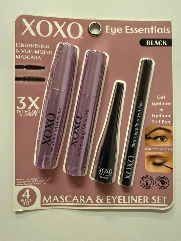 XOXO Eye Essentials 4-Piece Mascara & Eyeliner Set – Lengthening, Volumizing & Precision Black Liners